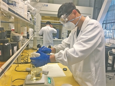 材料是3D打印的基础,图为石生科技研究人员正在配比材料。